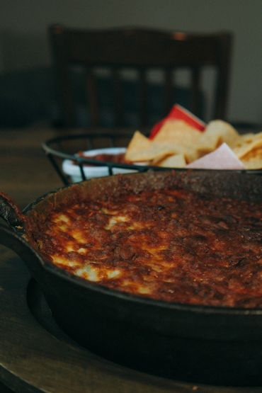 Creamy Spinach and Artichoke Dip Skillet Served with Tortilla Chips and Salsa