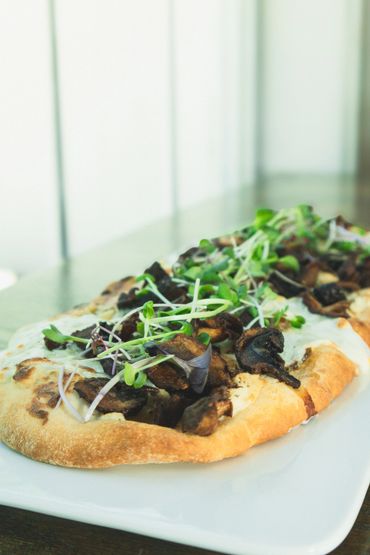 Herb and Roasted Garlic Whipped Ricotta, Fresh Mozzarella, Roasted Wild Mushrooms