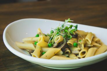 Creamy Wild Mushroom and Pea Stroganoff Over Pasta
