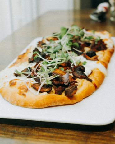 HERB AND ROASTED GARLIC WHIPPED RICOTTA, FRESH MOZZARELLA, ROASTED WILD MUSHROOMS